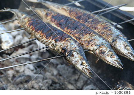秋刀魚 さんま の串焼き バーベキューの写真素材
